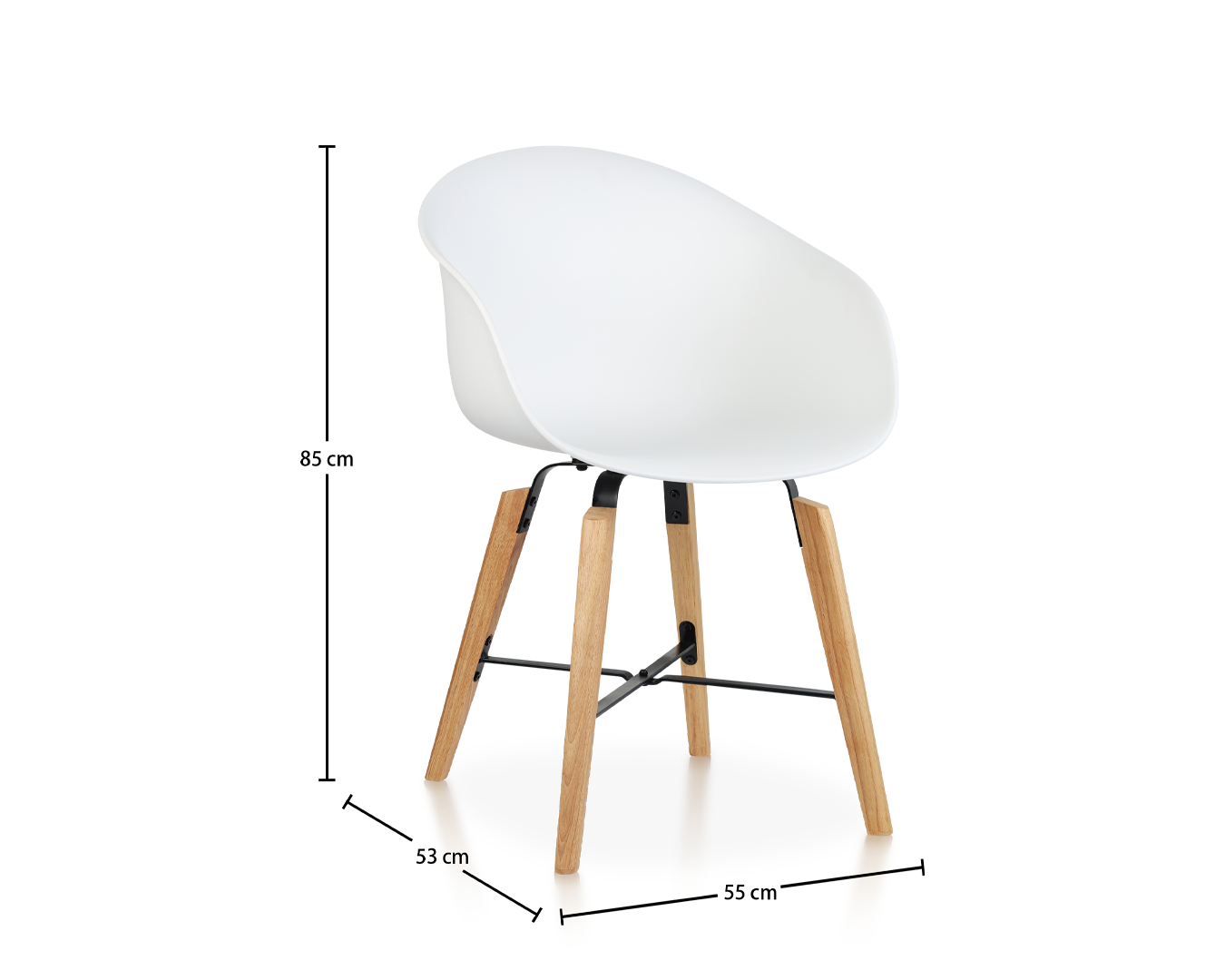 • Sedadlo je vyrobené z formovaného polypropylénu a je trvalé a ľahko sa čistí. Gumové drevené nohy a čierny práškový železný konektory dodávajú teplo a kontrast k celému bielemu vzhľadu.