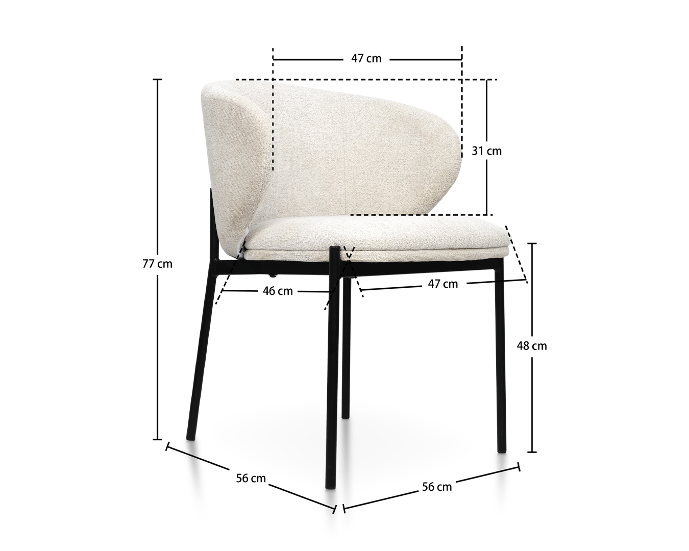 - Veľkosť: W56*D56*H77CM / SH: 48 cm