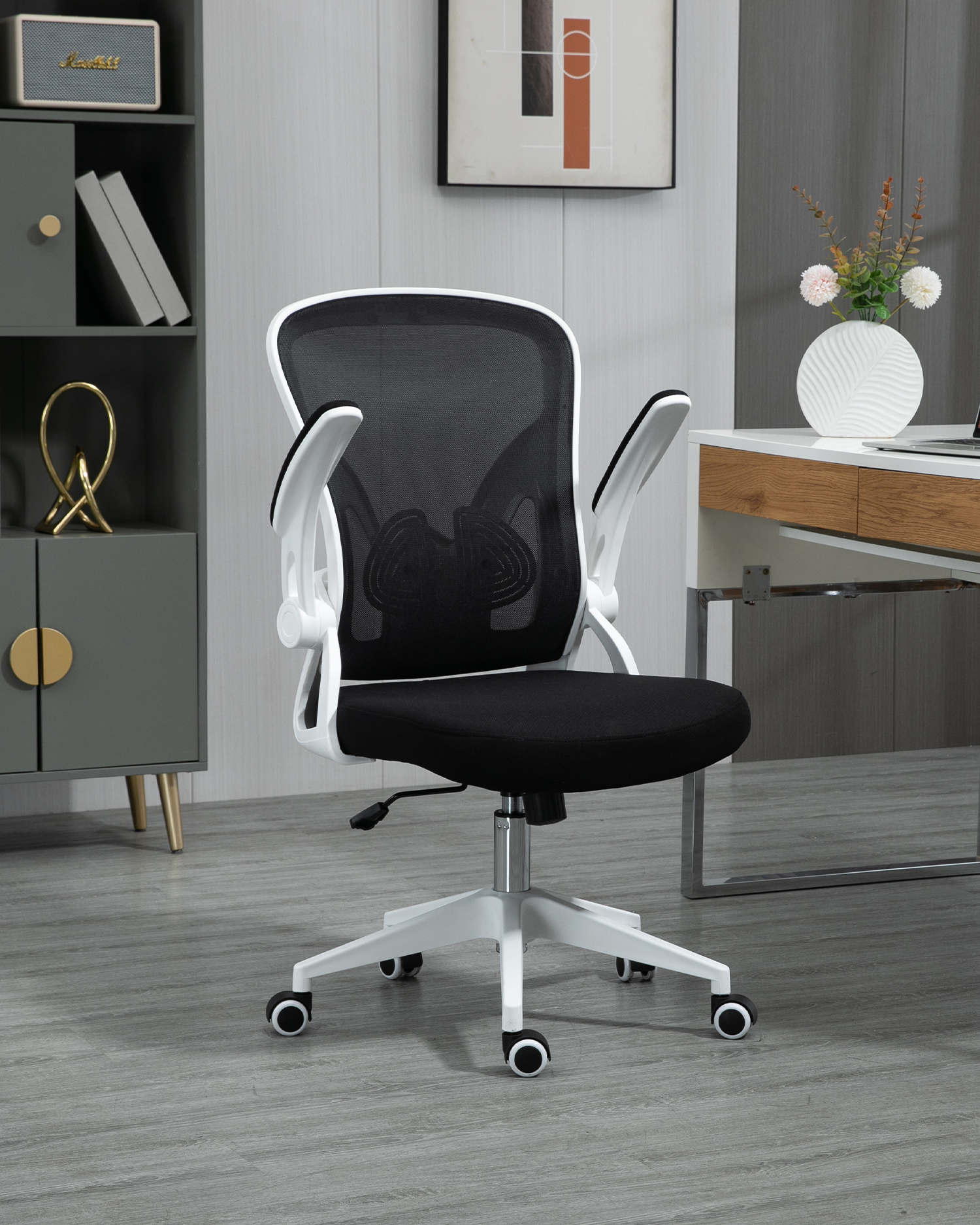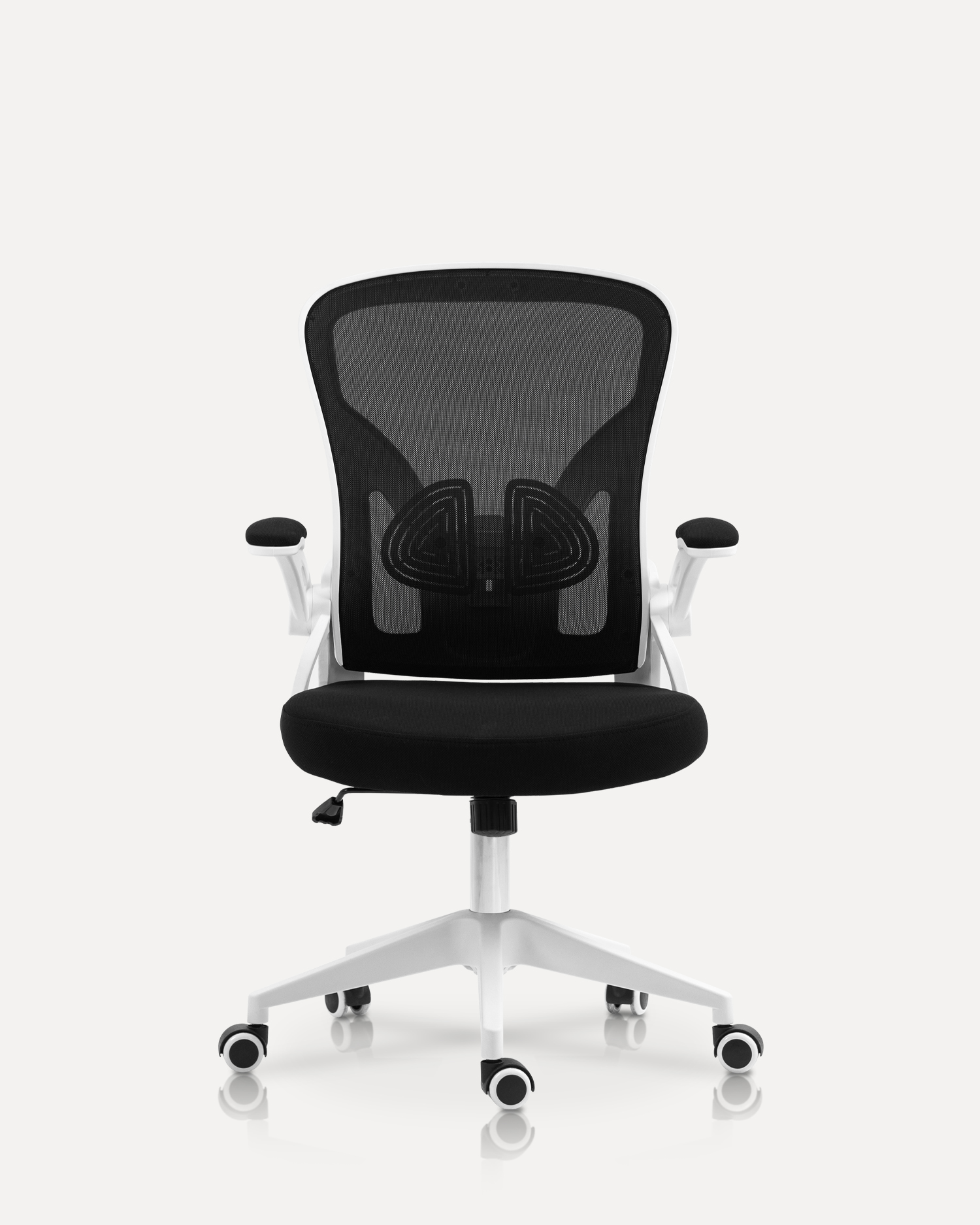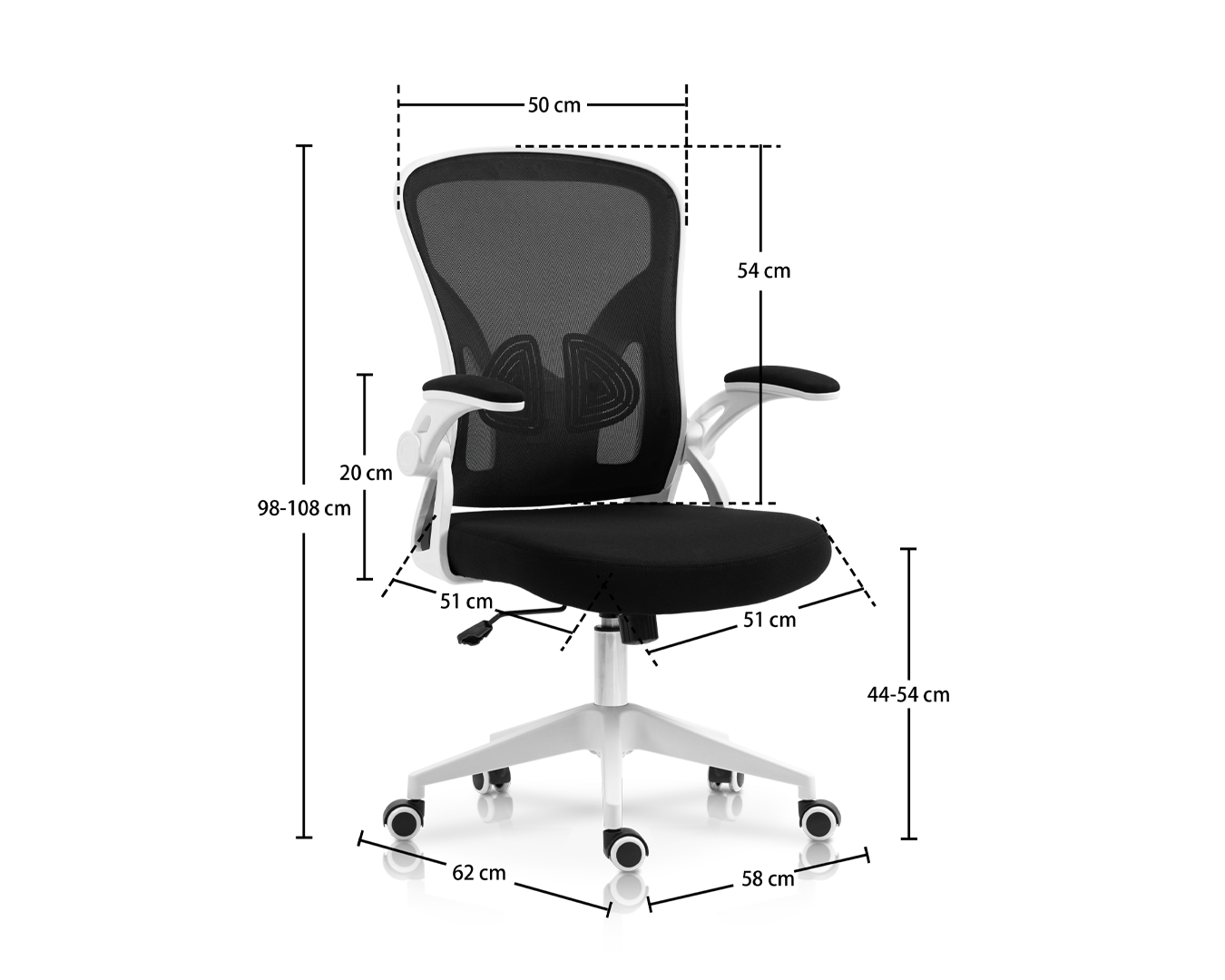 • Má elegantný a moderný dizajn s čiernym operadlom a sedadlom, doplnený bielymi lakťami a päťbodovým kolesovým základom. Materiál zo sieťoviny prispieva nielen k štýlovému vzhľadu stoličky, ale tiež poskytuje vynikajúcu priedušnosť a zaisťuje, že zostanete v pohode a pohodlnom po celý deň.
