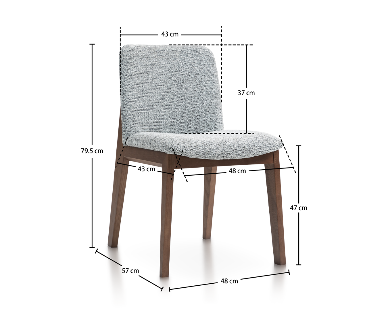 • Postavené z dreva z pevného popola, známe pre svoju silu a dlhovekosť, a skončené teplým, príjemným tónom, ktorý zvyšuje jeho prírodnú krásu. Veľkoryso tlmené sedadlo a operadlo sú čalúnené v mäkkej, odolnej látke, ktorá poskytuje luxusný zážitok zo sedenia. Jeho ergonomický dizajn podporuje správne držanie tela a zaisťuje, že môžete relaxovať alebo pracovať v ľahkosti.