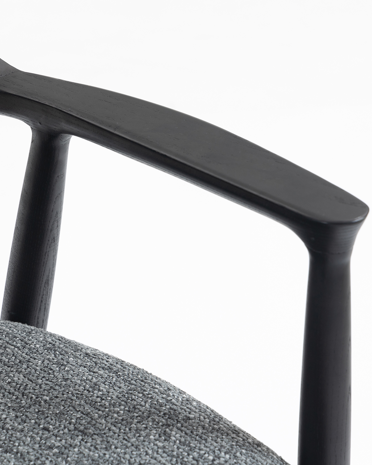 • Minimalistická drevená lakťová lakťová kreslá stelesňuje elegantný a sofistikovaný dizajn s nádychom útulného pohodlia. Táto stolička je perfektnou zmesou jednoduchosti a štýlu, môže sa pochváliť vynikajúcimi líniami a podhodnotenou krásou popolného dreva.