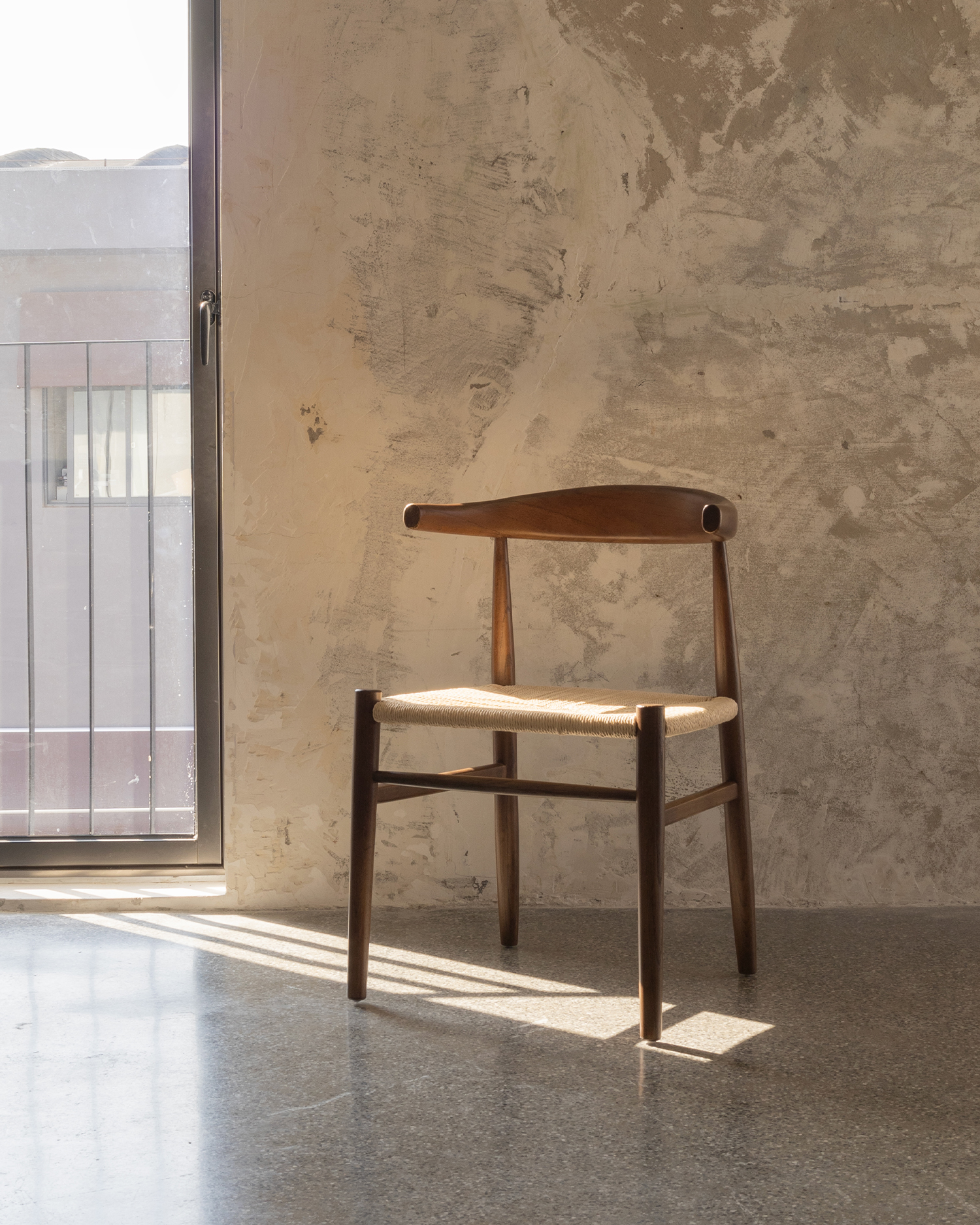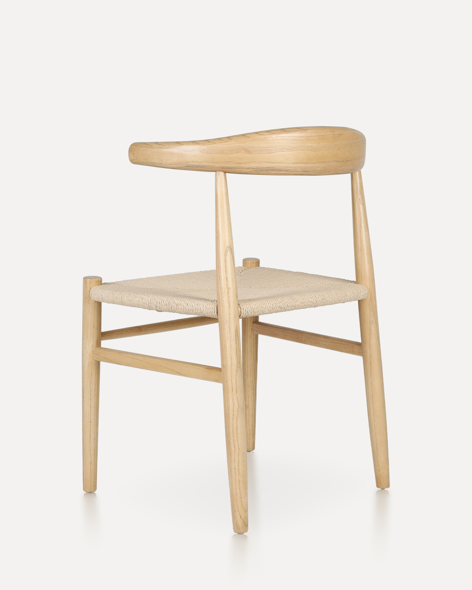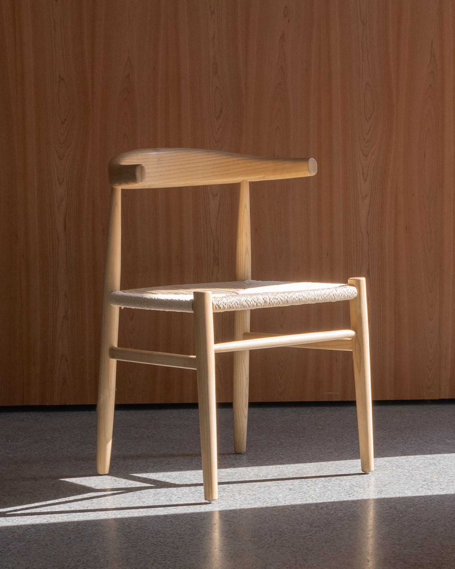 • Táto stolička nie je len kus nábytku; Je to svätyňa, v ktorej môžete uniknúť stresu každodenného života. Jeho všestranný dizajn mu umožňuje dopĺňať rôzne interiérové ​​štýly, vďaka čomu je nadčasovým doplnkom akéhokoľvek domu. Rám z popola, ktorý bol dokončený v teplej a prírodnej farbe, predstavuje prirodzenú krásu materiálu a zároveň pridáva moderný dotyk. Sedadlo papierového lana je dôkazom trvalo udržateľného dizajnu, ktorý poskytuje pohodlný a priedušný zážitok zo sedenia. Ergonomický dizajn podporuje správne držanie tela, vďaka čomu je ideálny pre relaxáciu aj prácu.